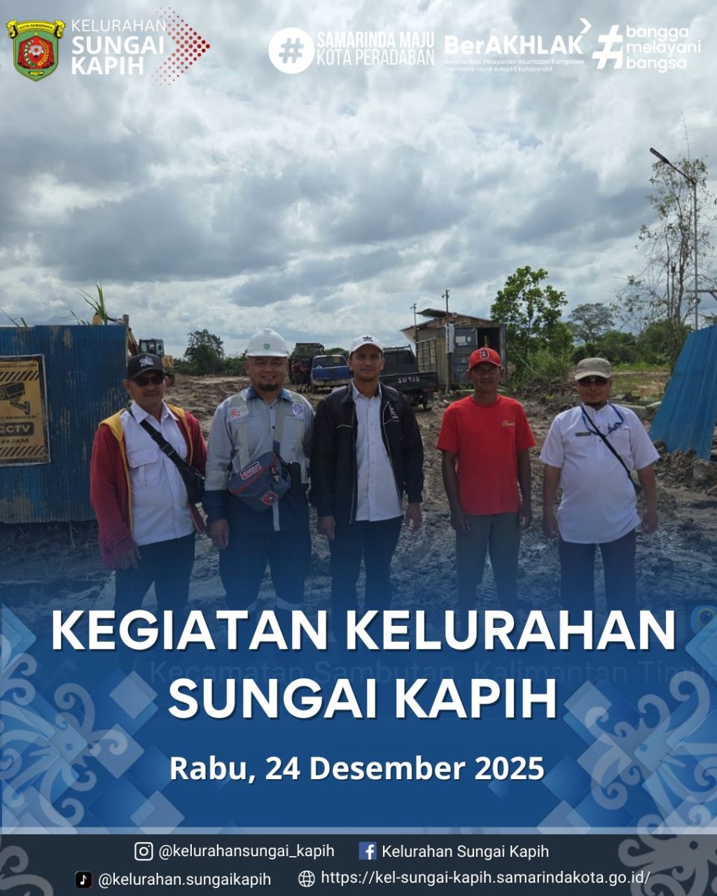 Kegiatan Kelurahan Sungai Kapih, Rabu 24 Desember 2025 January 22, 2026 Shift Piket harian membersihkan kantor kelurahan sungai kapih yang lama di jalan tatako sungai kapih Monitoring pengerukan paret di RT 12 Perum PKL sungai kapih oleh BPBD KOTA Samarinda HARI KE DELAPAN Pendampingan peninjauan dari DLH kota smd hasil tindak lanjut lapora...